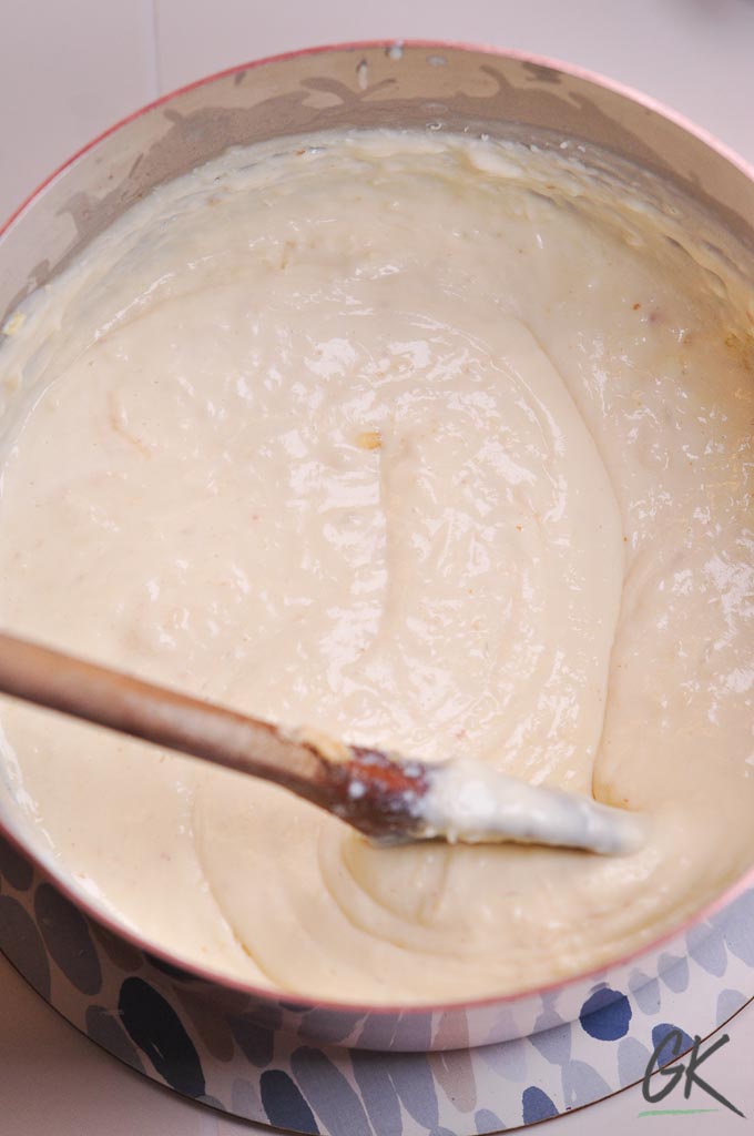 Gradually whisk in the milk, a little at a time, and cook over a low heat for 10 to 15 minutes.